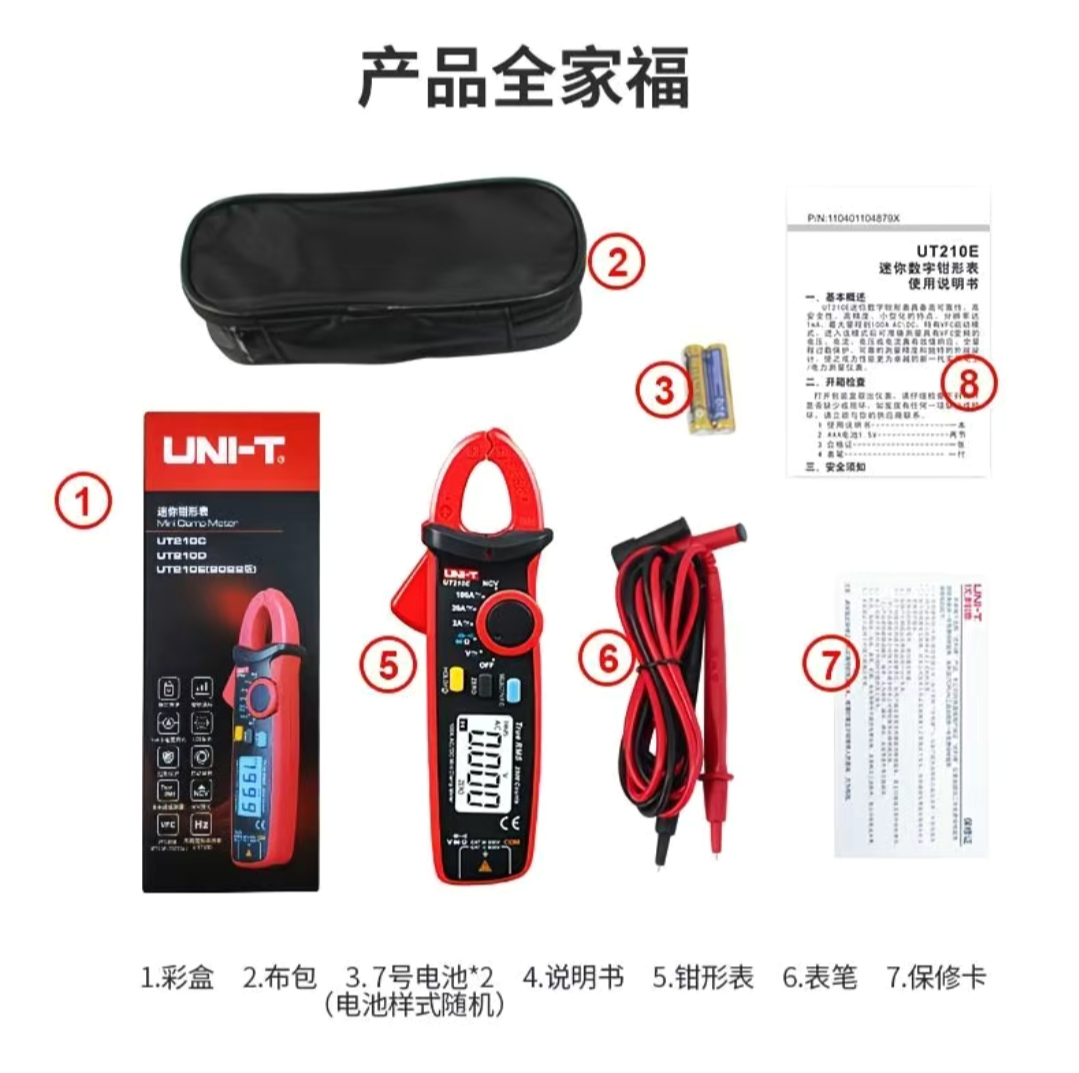 型號(hào):UT210E;參數(shù):交流電壓1mv-600v,直流電壓0.1-600v,交流電流1ma-100a,直流電流1ma-100a,NCV功能,自動(dòng)量程,自動(dòng)關(guān)機(jī),數(shù)據(jù)保持通斷蜂鳴,尺寸:175mm*60mm*33.5mm
